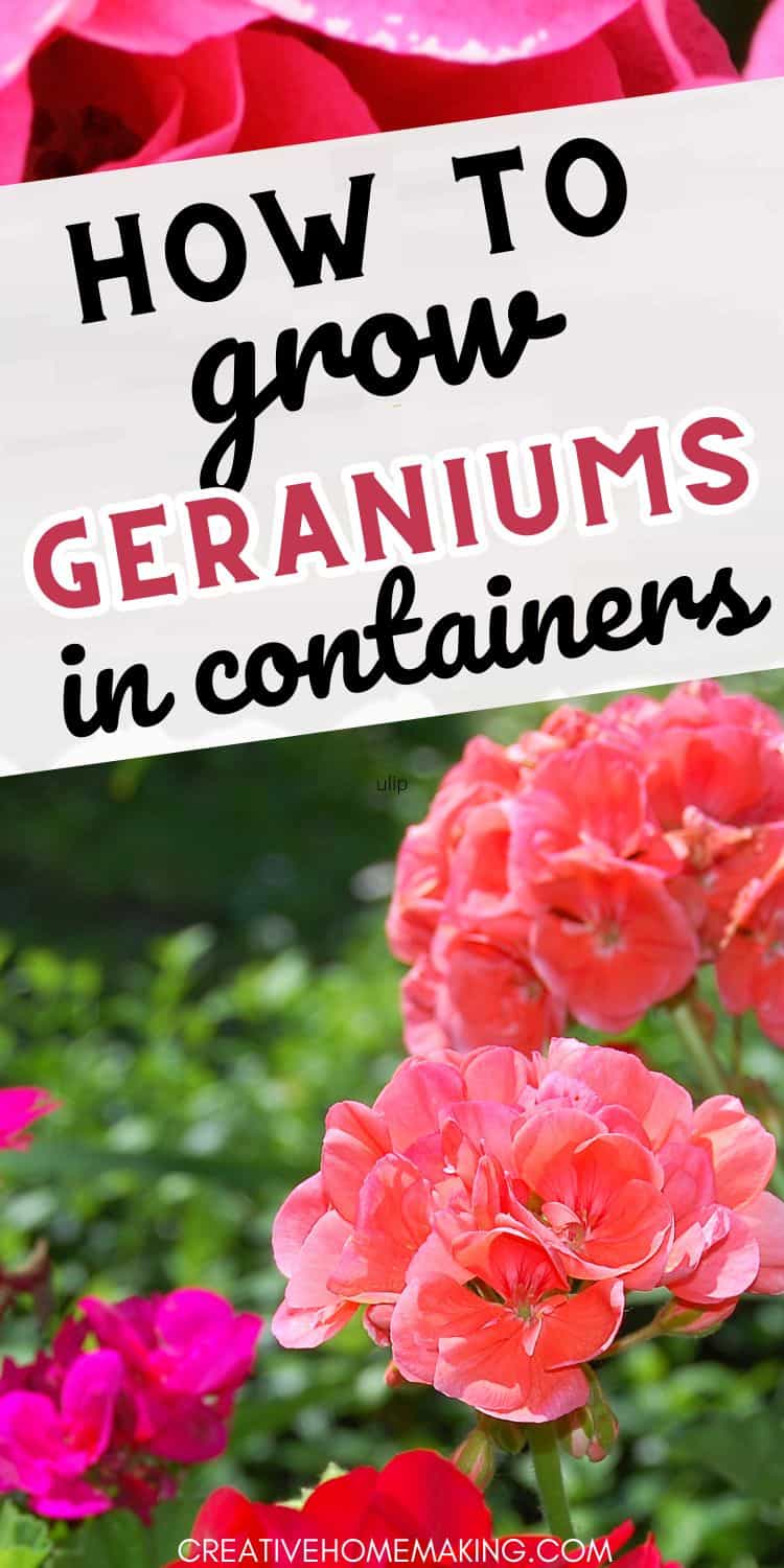 Growing geraniums in containers requires proper care and maintenance to ensure healthy and vibrant plants. Here are some tips to help you keep your geraniums thriving.
