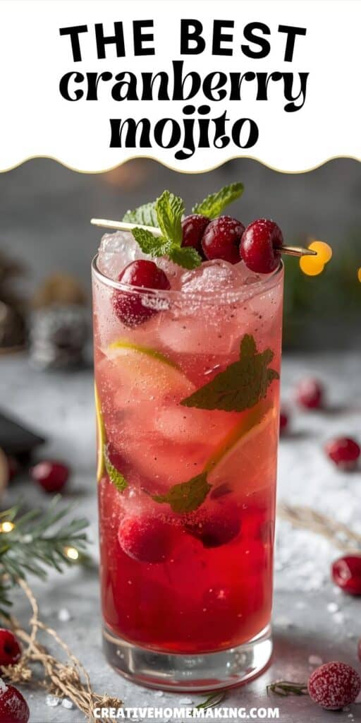 If you’re looking for a festive twist on a classic cocktail, a cranberry mojito is a perfect choice for Christmas. This drink mixes the fresh, bright flavors of mint and lime with cranberry, adding a sweet and tart holiday touch. A cranberry mojito brings a refreshing and colorful option to your holiday drinks that is easy to make and sure to impress your guests.