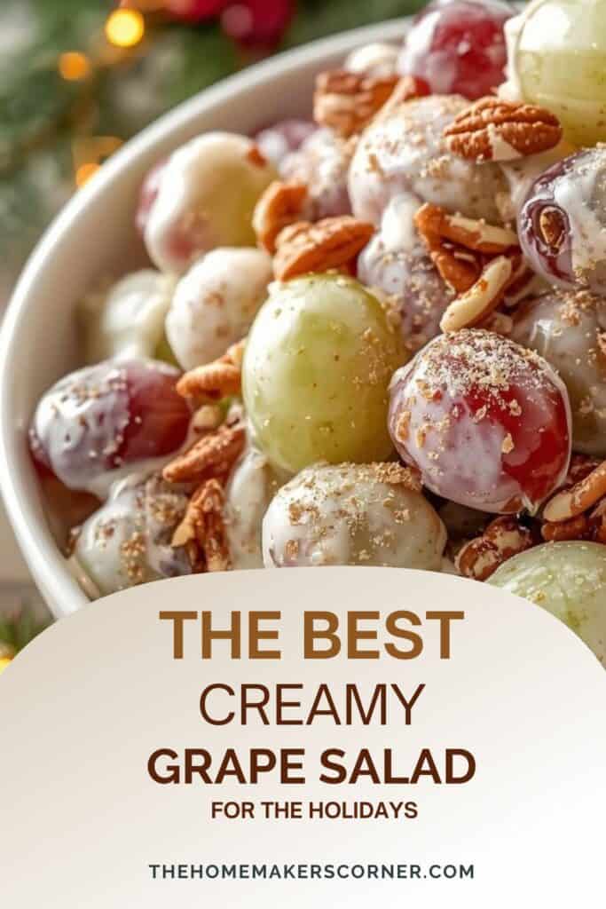 Store your grape salad in an airtight container in the fridge. It stays fresh for 2 to 3 days. Keep the nut topping separate if you want it to stay crunchy longer.