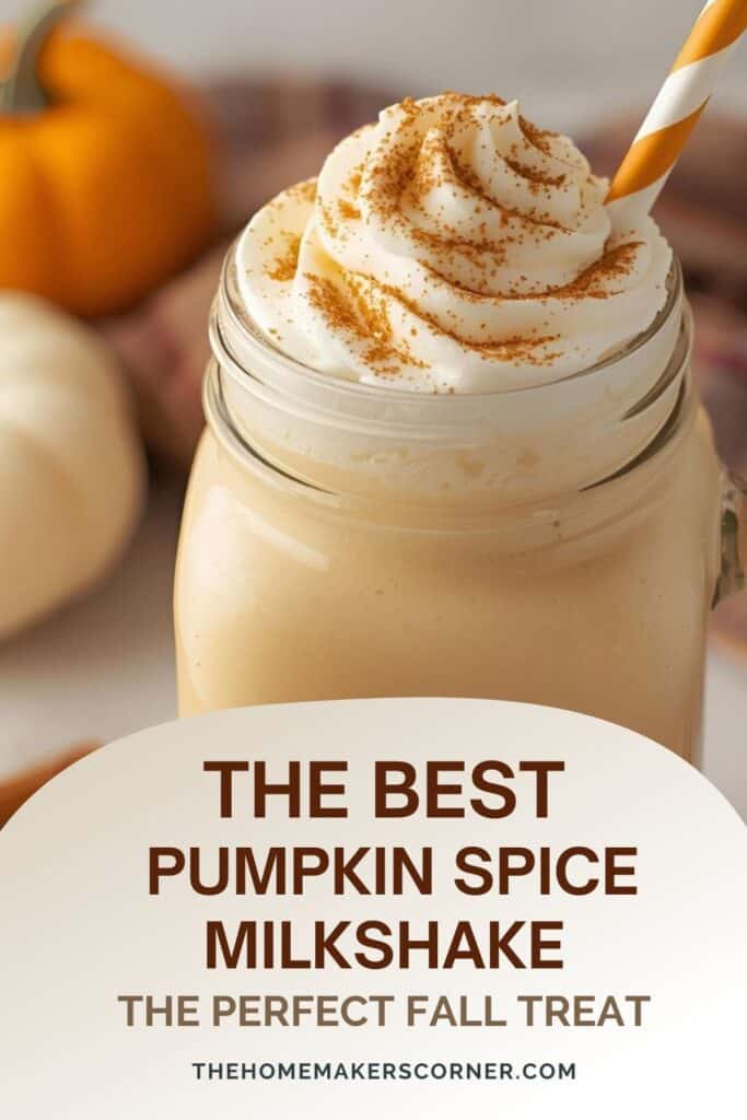 Toppings make your milkshake more delicious and fun. Whipped cream is a classic choice. Add a sprinkle of cinnamon, nutmeg, or pumpkin pie spice to boost the fall flavors.