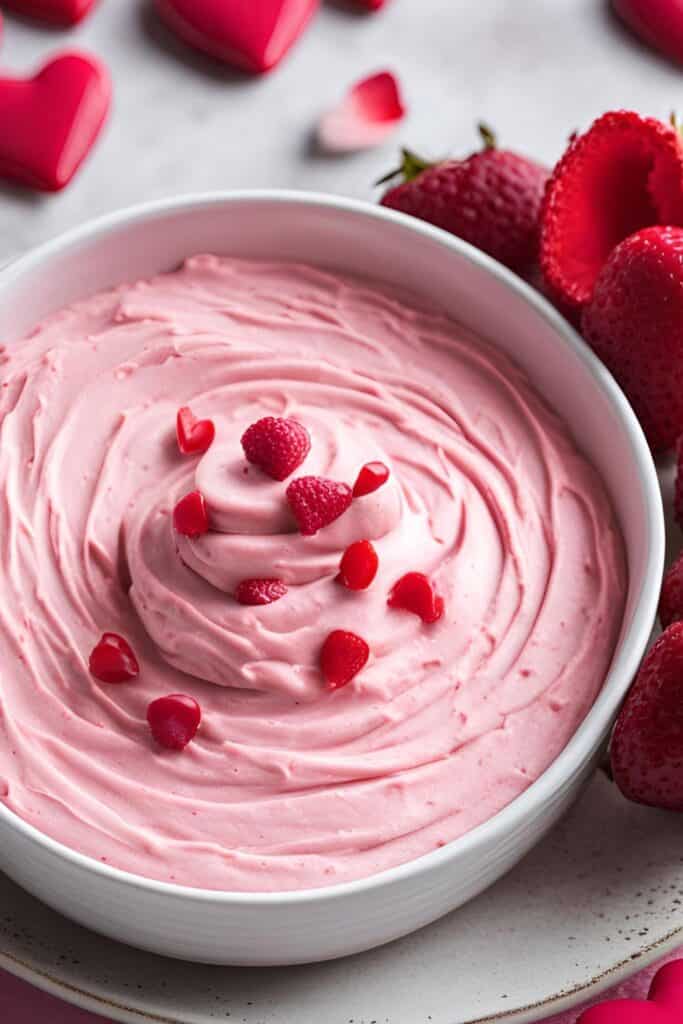 This sweet dip combines the classic flavors of cheesecake with a lovely pink hue, making it perfect for the occasion.