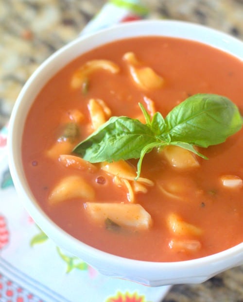 This is a delicious, classic homemade tomato soup recipe. It will take you about 15 minutes to prepare this recipe in the morning before you start your day. The main ingredients you will need to have on hand are tomato sauce, heavy cream, fresh basil, and tortellini.