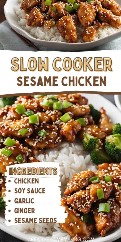 The slow cooker does all the work, delivering melt-in-your-mouth chicken coated in a sticky, glossy glaze. Serve it over steamed rice with a sprinkle of sesame seeds and chopped green onions for an easy, comforting takeout-style meal at home.