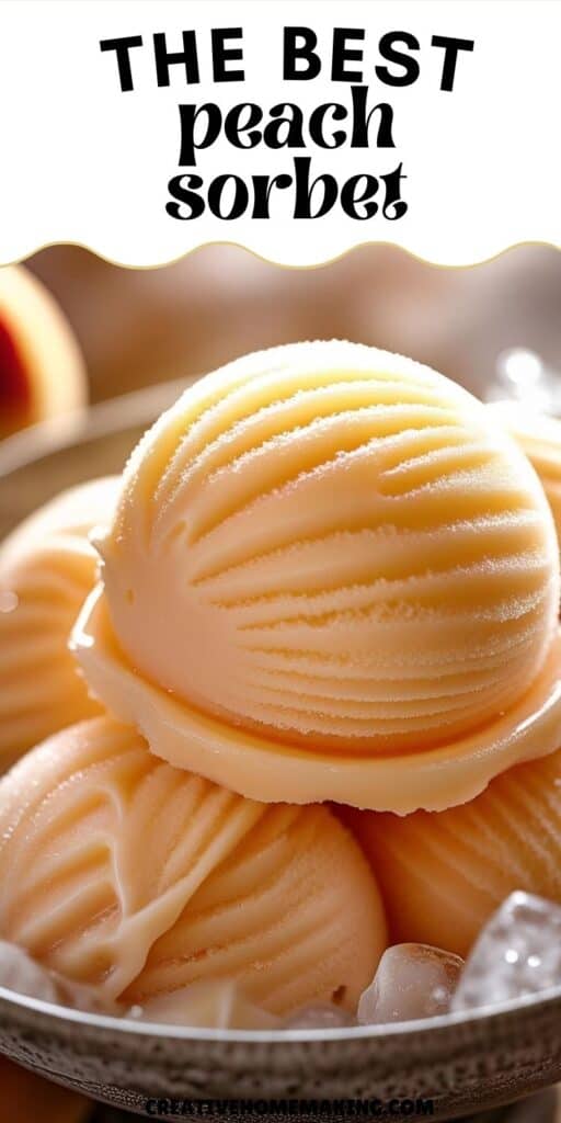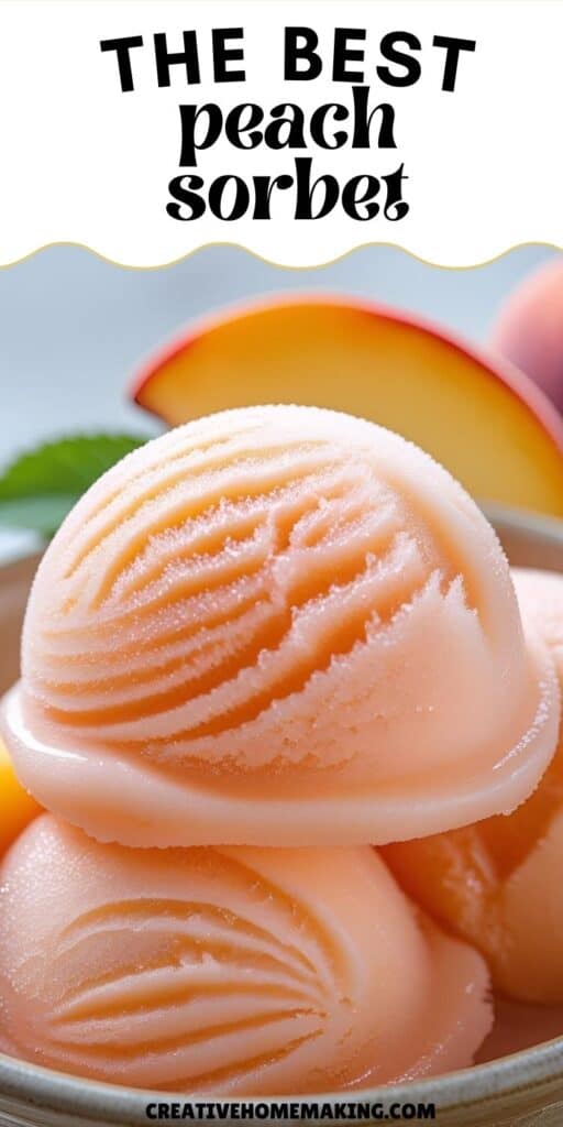 Serve peach sorbet in small bowls or glasses for a neat look. Garnish with fresh peach slices or a sprig of mint to make it appealing.
