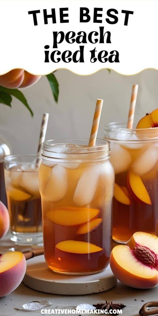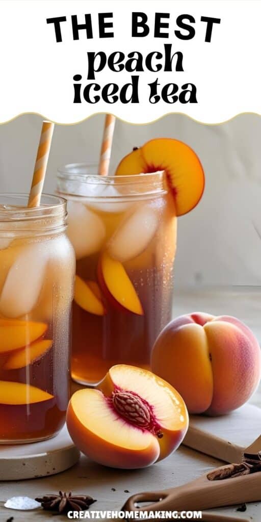 Serve your peach iced tea over plenty of ice to keep it cold longer. Add fresh peach slices or a sprig of mint as a garnish. These little touches make the tea look inviting and add extra flavor.