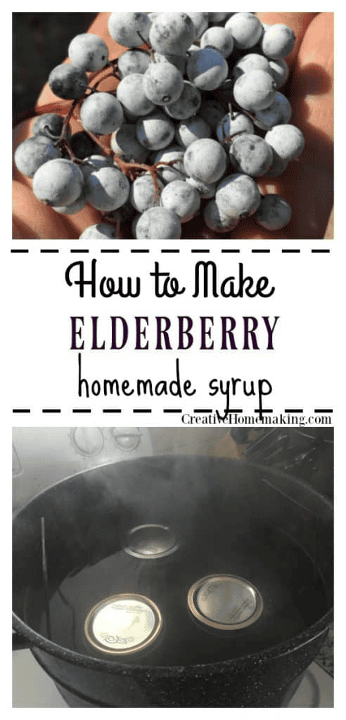 Last summer I picked a bunch of elderberries for the first time. I had so much fruit to can that I didn’t have time to do anything with the elderberries so I just put them in the freezer. I later decided to try making a batch of elderberry syrup from them. It’s really easy!