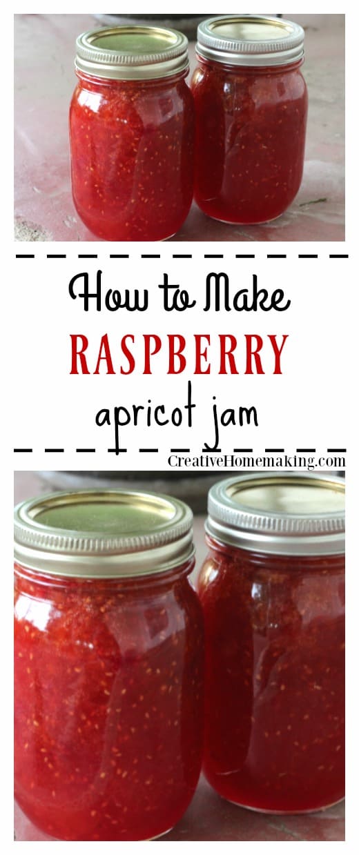 I am a huge fan of raspberry jam. It is one of my favorite kinds of homemade jam. I was so excited this year that my raspberry patch finally produced enough raspberries to make some homemade raspberry jam. While looking for new jam recipes to try on Pinterest, I found a recipe for canning raspberry apricot jam, so I decided I needed to give it a try.