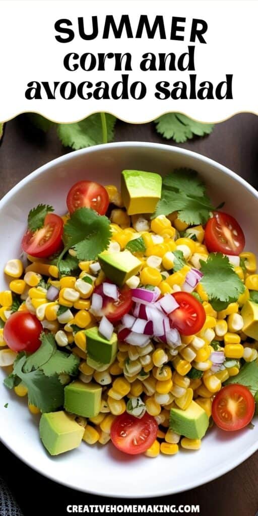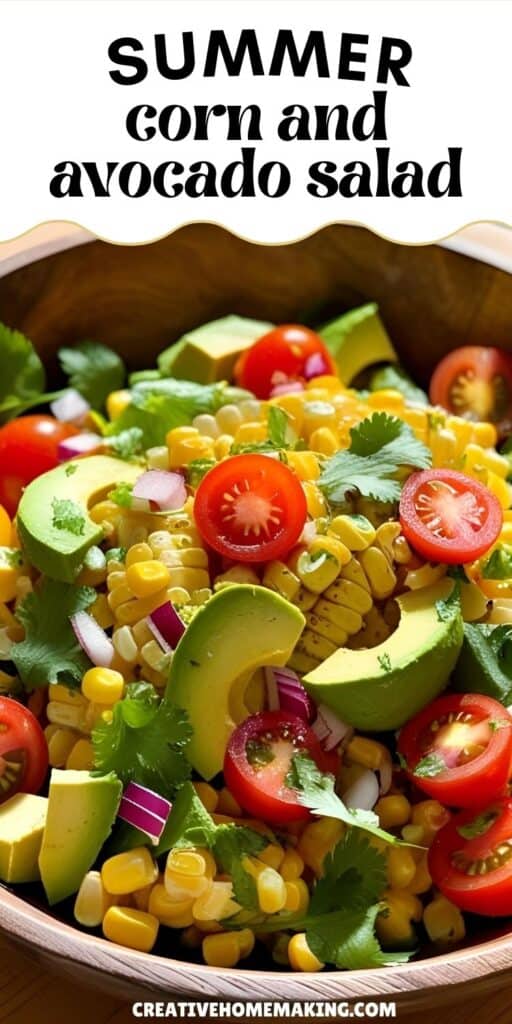 You get the sweetness of corn mixed with the creamy texture of avocado. Plus, you can add simple seasonings and fresh ingredients to make it your own. This salad not only tastes good but also gives you a boost of nutrients.