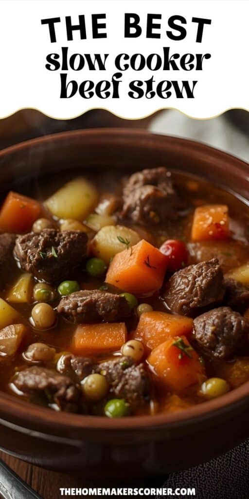 Use a slow cooker that fits your amount of stew so ingredients don’t overcrowd. Overcrowding slows cooking and can make the meat tough.