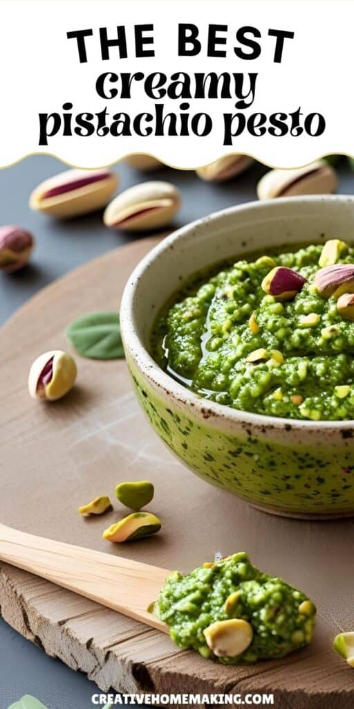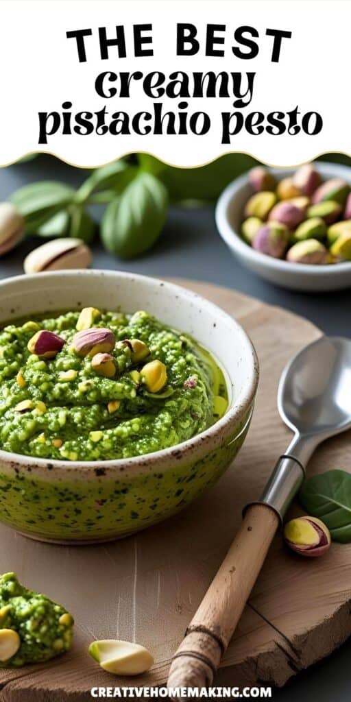 You’ll love how the pistachios add a unique nutty taste that stands out from traditional pesto. Plus, the creamy texture makes it a versatile sauce that you can enjoy in many ways without any extra effort.